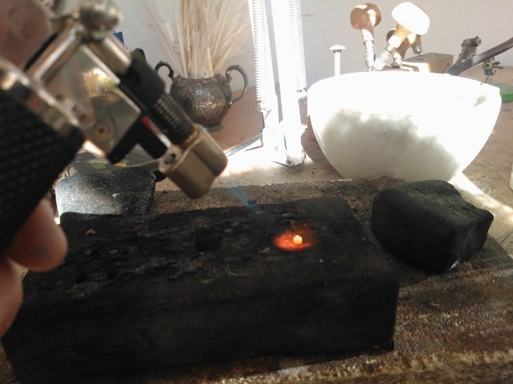 En guldkugle bliver til, 24 kt. guld smelter ved over 1000 grader!